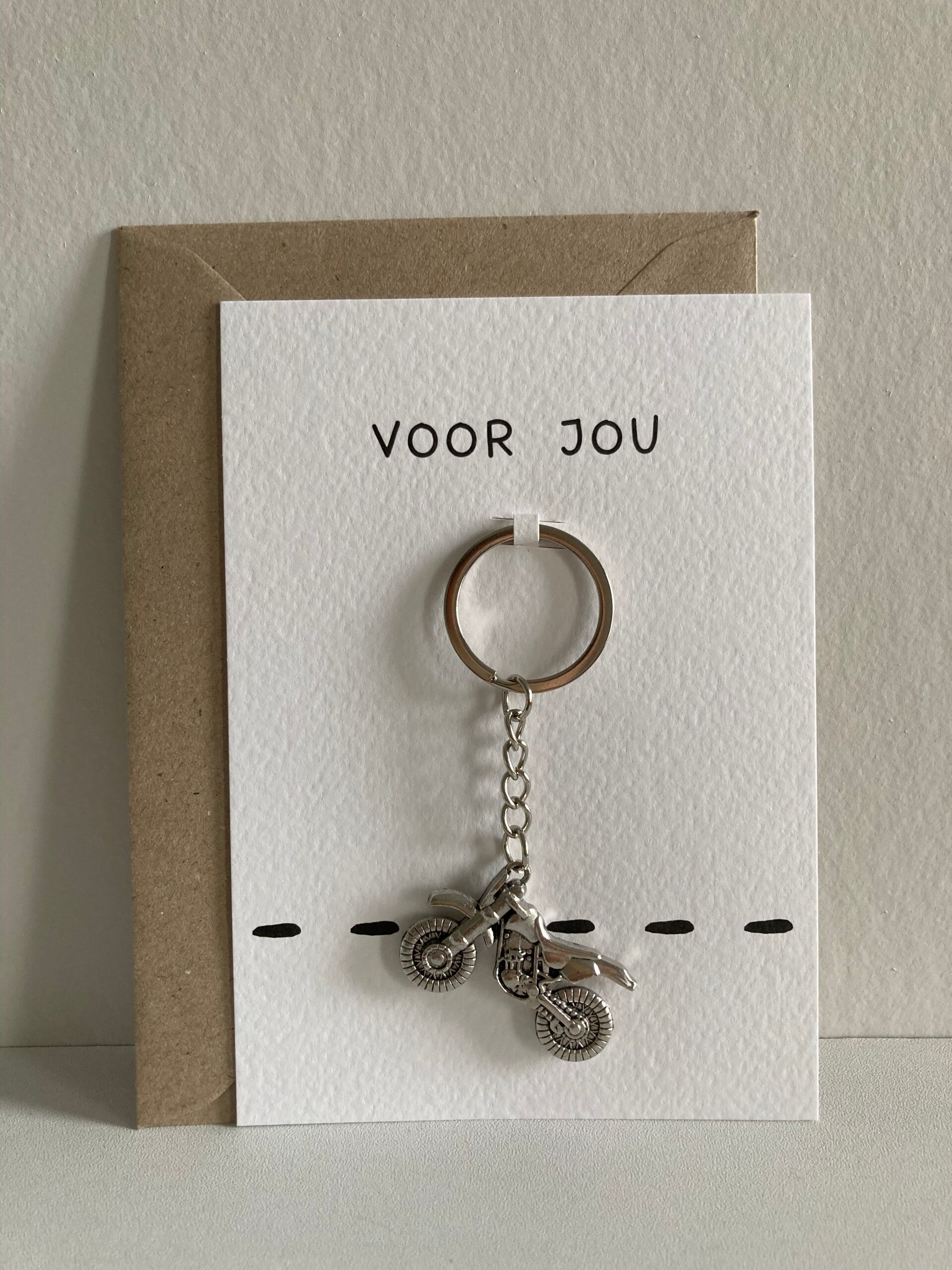 Inclusief kraftkleurige envelop, sleutelhanger en sluitsticker