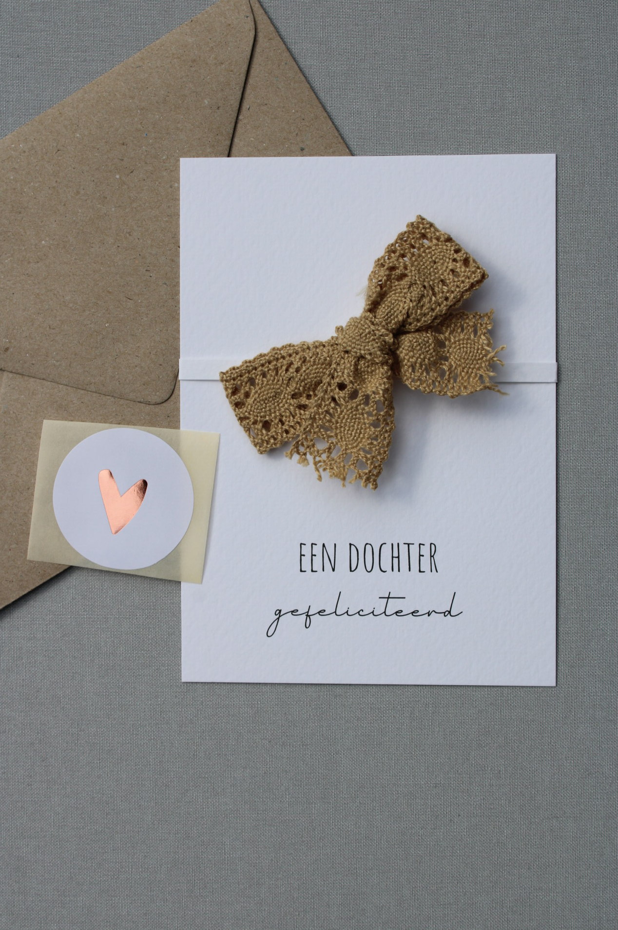 Inclusief kraftkleurige envelop, haarclip en sluitsticker